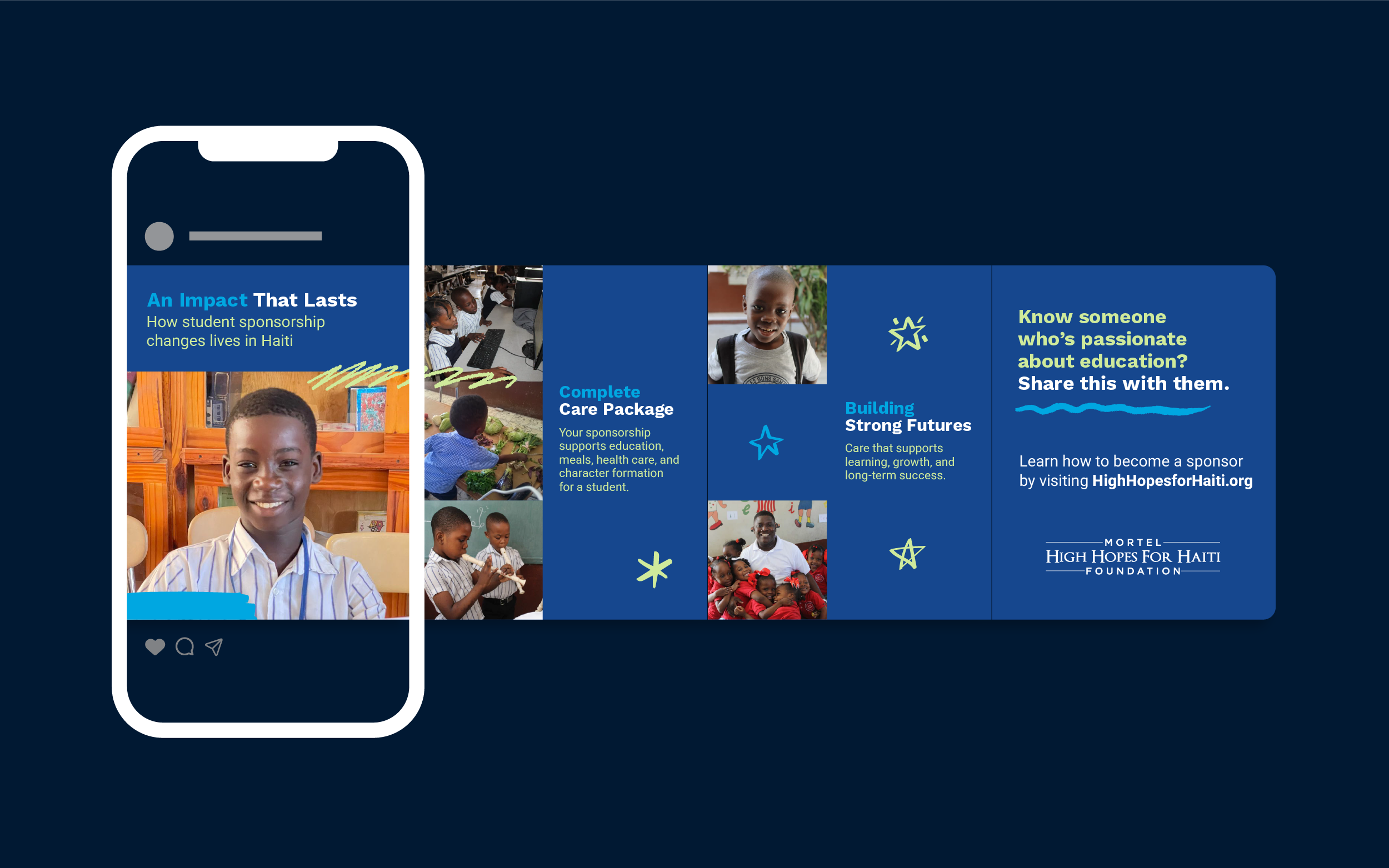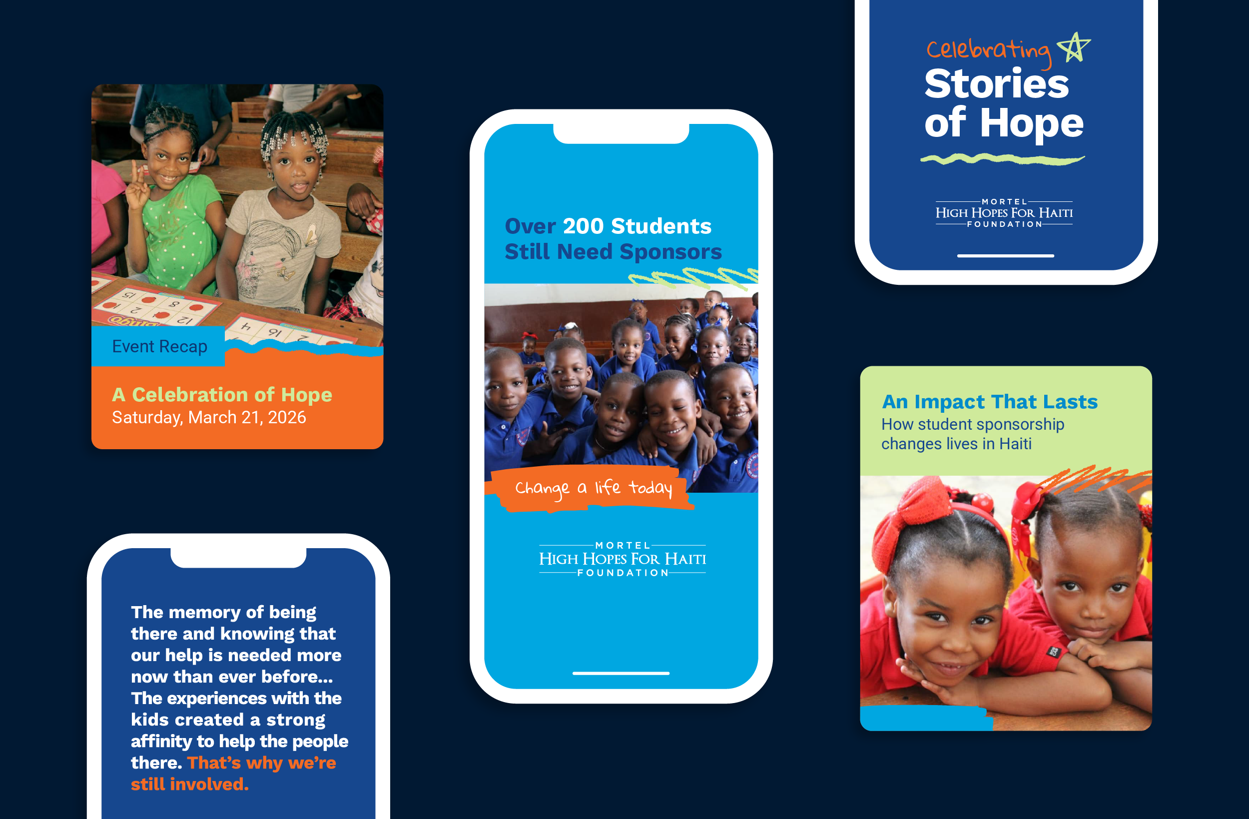 The Mortel Foundation had strong stories and meaningful photography, but their Instagram lacked consistency and polish. Text-heavy posts were difficult to read and the overall feed didn’t always reflect the professionalism of the organization. They needed a more cohesive system that could support fundraising, education, and storytelling while also enabling their team to easily update content and reuse designs.